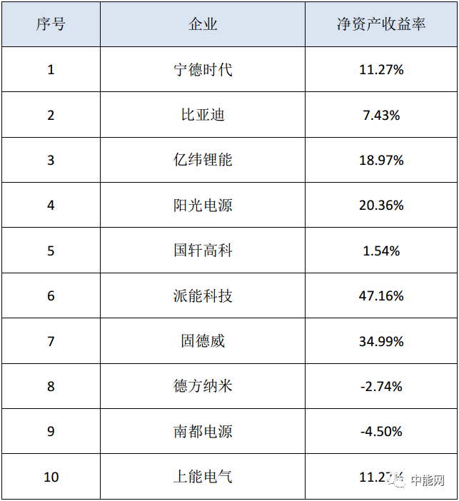 2020年儲能概念股凈資產(chǎn)收益率