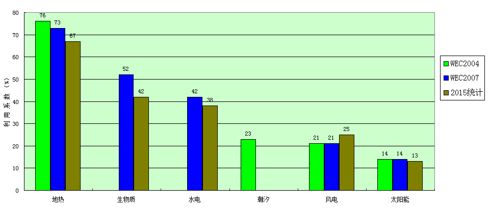 圖1 各種可再生能源的利用系數比較