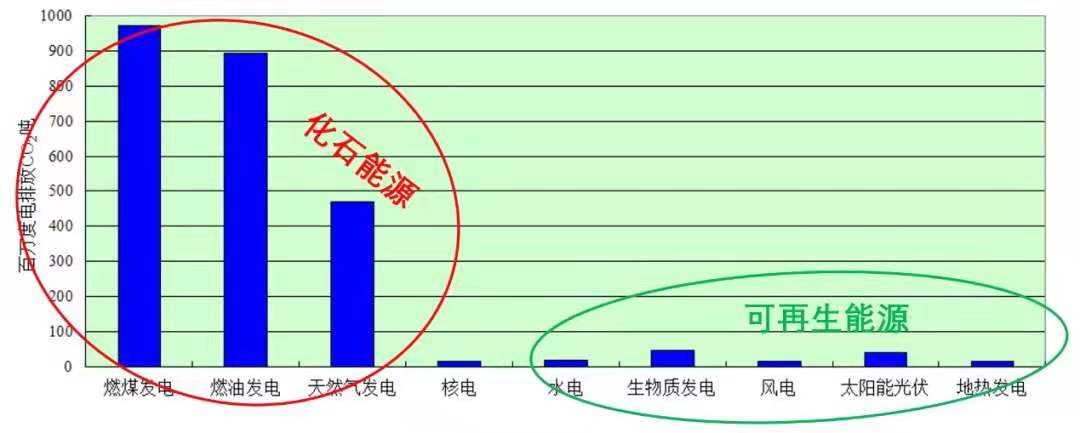 圖2 各種能源二氧化碳排放量的對比
