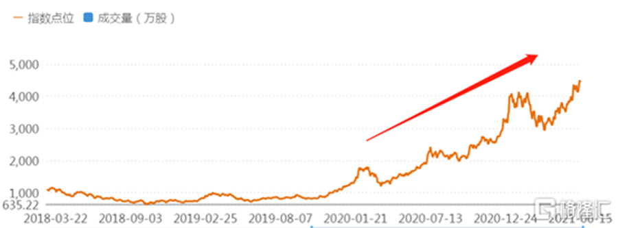 從鋰電池指數的歷史市場表現上來看,近三年指數整體呈上揚趨勢,從2019年底的不足1000迅速攀升,到2021年初突破4000點。雖然2月后受到整個A股市場低迷的影響有所回落,但目前已經突破歷史的最高點。