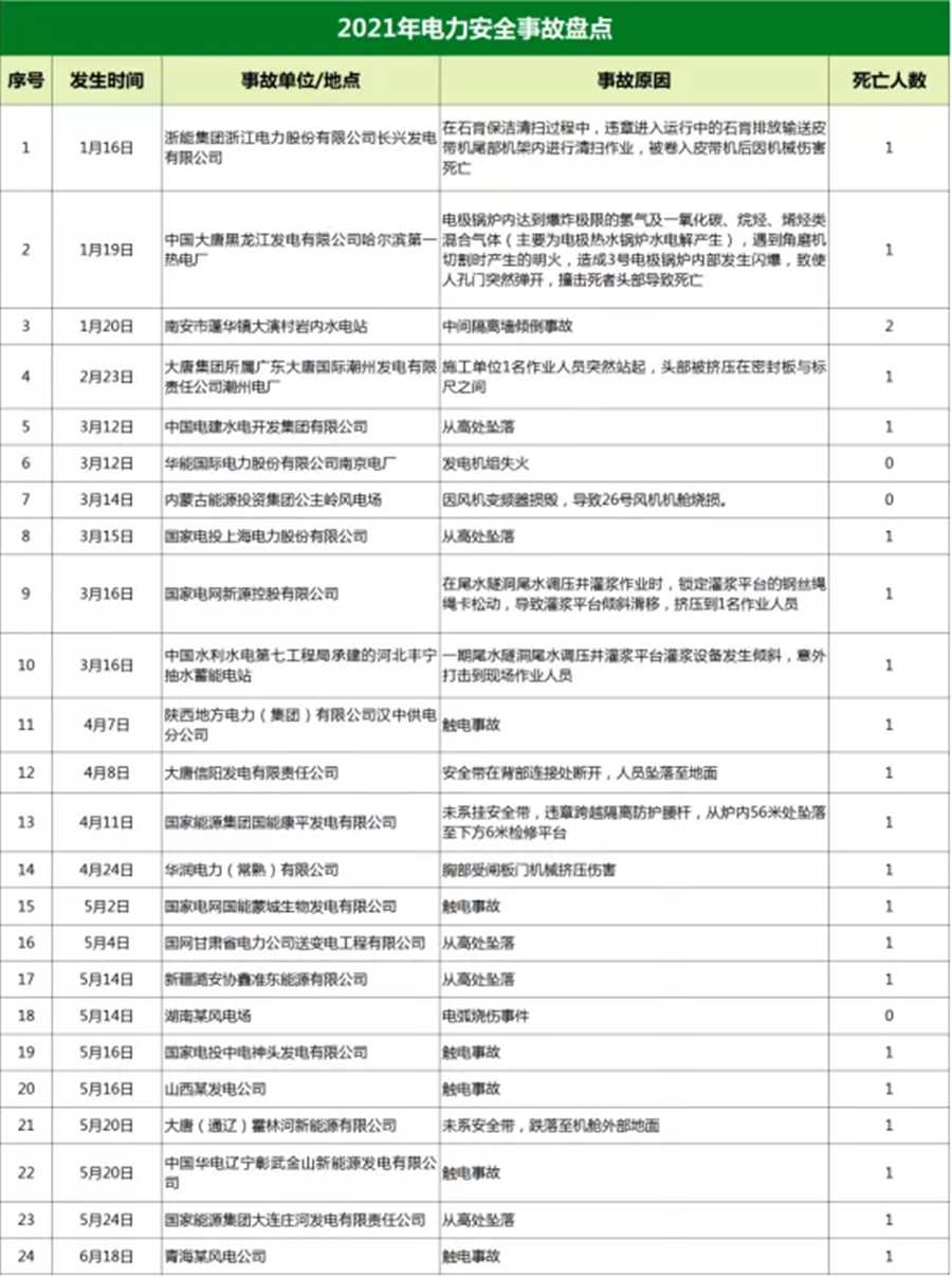 據(jù)國際能源網(wǎng)記者統(tǒng)計(jì)2021年至今已發(fā)生了24起電力安全事故,造成22人死亡,僅2021年5月全國發(fā)生電力人身傷亡就發(fā)生了事故9起、死亡8人。其中出事企業(yè)包括中國大唐、國家電網(wǎng)等大型電力企業(yè)。