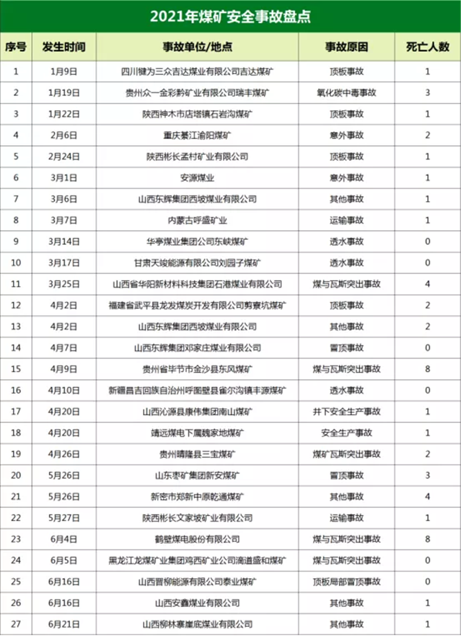 隨著國家政府的重拳出擊,煤礦安全問題取得了不錯(cuò)的成績,國際能源網(wǎng)記者從2021年1月8日召開的全國礦山安全生產(chǎn)工作會議上獲悉,2020年共發(fā)生煤礦事故 122起、死亡225人,同比下降28.2%和28.8%;全年未發(fā)生重特大瓦斯事故,是新中國成立以來首次。據(jù)統(tǒng)計(jì),2021年以來,我國共發(fā)生煤礦事故27起、死亡49人。其中,山西省作為產(chǎn)煤大省,也成為了煤礦事故的重災(zāi)區(qū)。截至目前,山西省已發(fā)生8起煤礦事故。雖然煤礦事故總體數(shù)量在減少,但從能源全行業(yè)看,它依舊是事故高發(fā)的重災(zāi)區(qū)。少報(bào)、瞞報(bào)煤礦事故的情況時(shí)有發(fā)生。