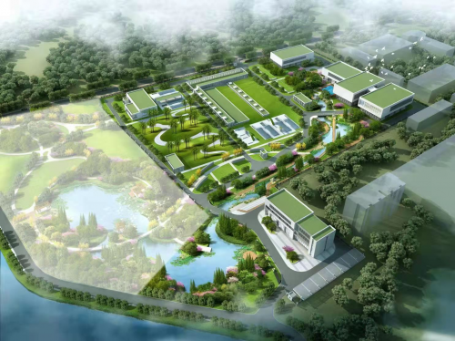 珠海市金灣區紅旗水質凈化廠3D鳥瞰圖,蘇伊士為其提供設備供貨及相關技術服務。