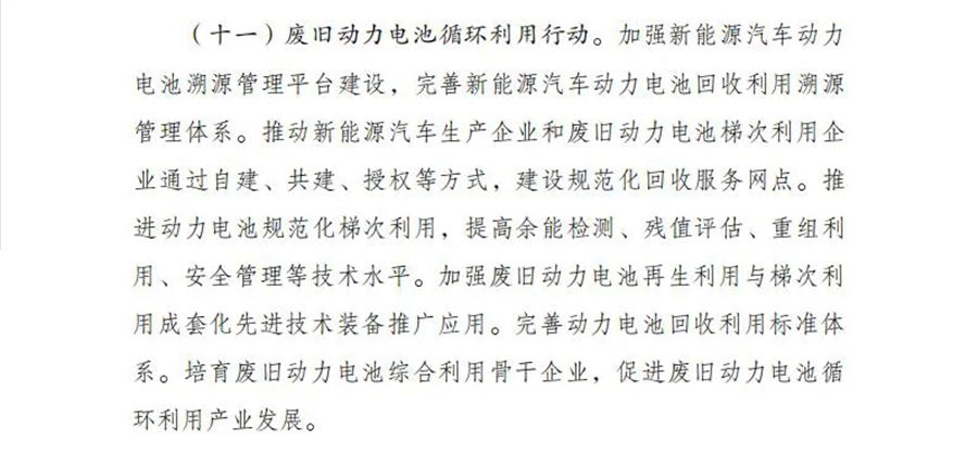 6)培育廢舊動力電池綜合利用骨干企業,促進廢舊動力電池循環利用產業發展。