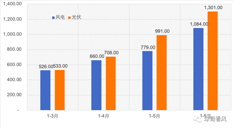 2021年1-3/1-6月單月風電/光伏新增總規模數據 單位:萬千瓦