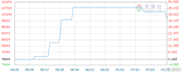 截至7月29日,國產多晶硅市場報價在10000元/噸,價格較先前的快速上漲出現環比下滑趨勢。
