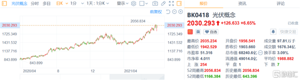 其實,從2020年下半年開始,光伏指數就不斷走出犀利的上升趨勢,背后離不開新能源這一國家大政方針支持的產業扶持。