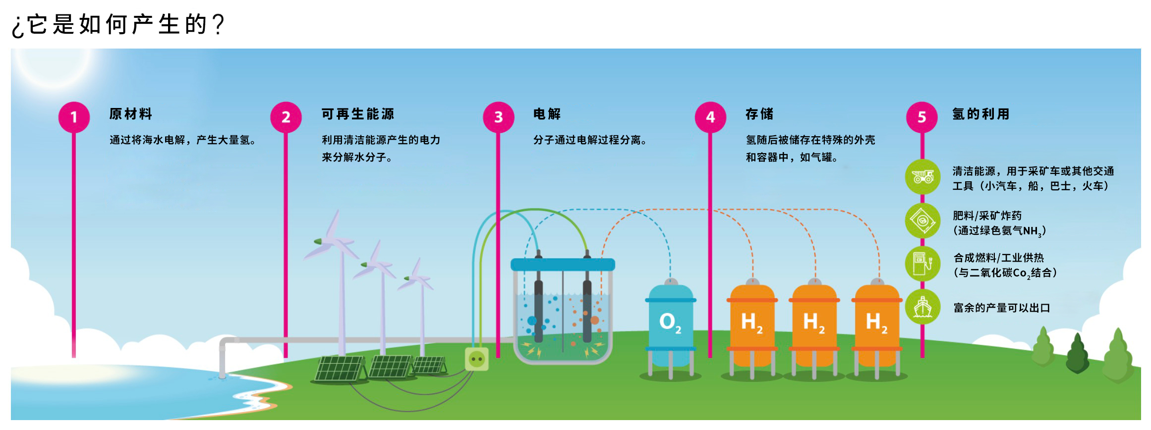 這些軟環(huán)境無疑為智利發(fā)展綠色氫能提供了極為有力的幫助,一方面極大地促進(jìn)了綠色氫產(chǎn)業(yè)技術(shù)的發(fā)展,另一方面又拓寬了綠色氫的應(yīng)用場景,從上游至下游,全方位、全產(chǎn)業(yè)鏈幫助智利盡快地實現(xiàn)綠色氫在國際市場上的競爭力。