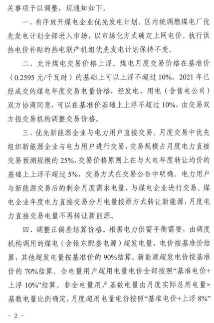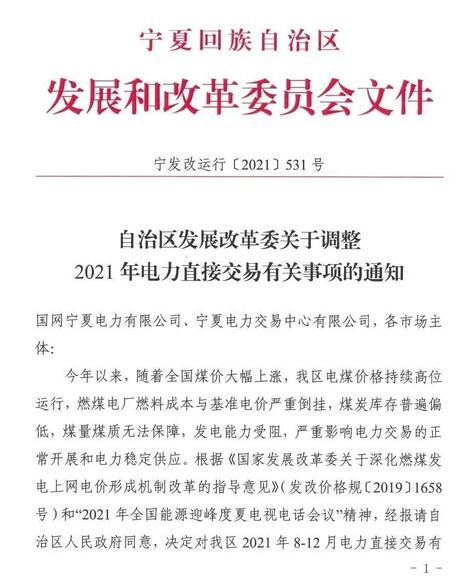 標簽:寧夏發改委,煤電交易價格,上浮