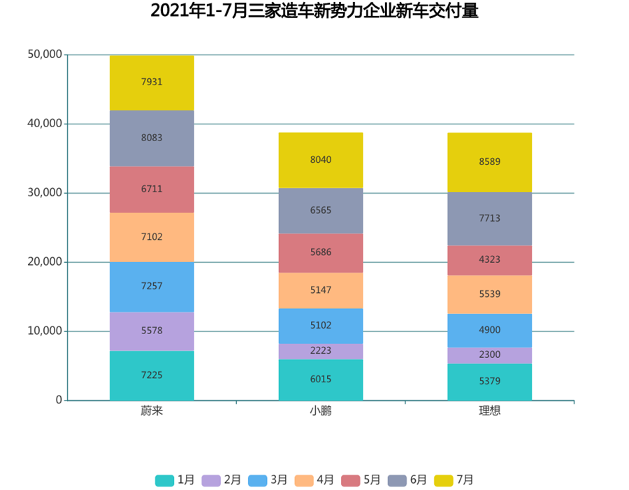 最近公布的(未計入Q2)7月份交付數據更是令人大跌眼鏡:蔚來直接被理想、小鵬反超,三者的交付數據分別是7,931輛、8,589輛、8,040輛。