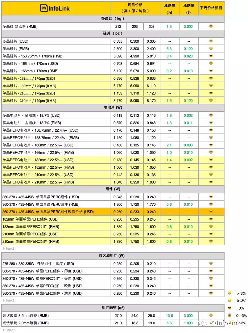 9月1日,PVInfoLink發布光伏供應鏈周價格匯總。