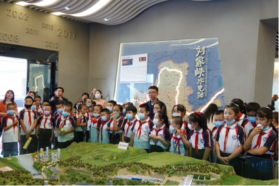 “1969年4月,劉家峽水電站第一臺機組并網發電,1974年12月五臺機組全部投產。1987年至2002年,利用國內外先進技術和設備,歷時15年自主完成5臺機組的增容改造,凈增發電能力19萬千瓦。2018年7月,新建的洮河口2臺15萬千瓦機組投運,總裝機容量達166萬千瓦。”面對著筆直的大壩和寬闊的水庫,聽到劉家峽水電廠的發展史和企業取得的成績,學生們紛紛驚嘆感慨,小小的心靈中表露出崇敬的愛國情懷。