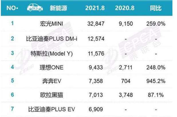 8月份國內(nèi)新能源汽車銷量排名數(shù)據(jù)顯示,熱銷第一名、第二名分別是宏光miniEV、比亞迪秦plus DM-i,而特斯拉model Y僅位居第三名,曾經(jīng)位列國內(nèi)熱銷新能源汽車榜首的model3已在TOP15中消失。