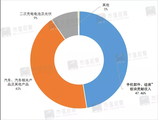 上半年,比亞迪三大板塊業務中,“手機部件、組裝”板塊貢獻收入431.32億元,占總營收47.46%;“汽車、汽車相關產品及其他產品”貢獻收入391.57億元,占總營收43.08%,“二次充電電池及光伏”貢獻收入82.87億元,占總營收9%。這些都是實打實地賣硬件。