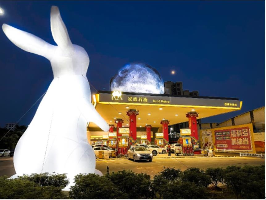 傳統(tǒng)的東方美學(xué),講究的是恢弘大氣與內(nèi)斂?jī)?nèi)秀的完美統(tǒng)一,在冠德國潮主題加油站中,我們也看到了這種表達(dá)。遠(yuǎn)遠(yuǎn)看去加油站的上方懸掛著一輪大大的滿月,與地面望月的玉兔相得益彰,瞬間激起游子們的思鄉(xiāng)情愫,視覺沖擊力相當(dāng)強(qiáng)烈。走進(jìn)油站,國潮的祥瑞之感撲面而來,明亮的黃既是冠德石油的色彩符號(hào),也是國潮中象征尊貴的顏色,大面積運(yùn)用是對(duì)中國傳統(tǒng)色的致敬,也讓油站更添活力。尤其是國潮造型的油機(jī)跟柱子,前者別具一格的紋樣讓人眼前一亮,后者恢弘大氣,氣勢(shì)挺拔強(qiáng)勢(shì),將油站屬性跟國潮文化完美融合在了一起,符合國潮的美學(xué)典范。