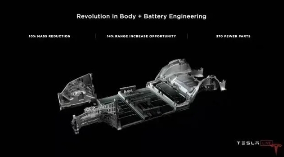 當(dāng)前,特斯拉的電池架構(gòu)是通過將電芯組合成模塊,這些模塊組合在一起形成電池組,然后把電池組安裝在車輛平臺上。新架構(gòu)的不同之處在于,特斯拉不再使用模塊,而是將整個電池組構(gòu)建為車輛的結(jié)構(gòu)平臺,這種新設(shè)計能有效減少零部件的數(shù)量和電池組的總質(zhì)量,因此有利于提高效率,降低成本,并最終提高電動汽車的續(xù)航里程。