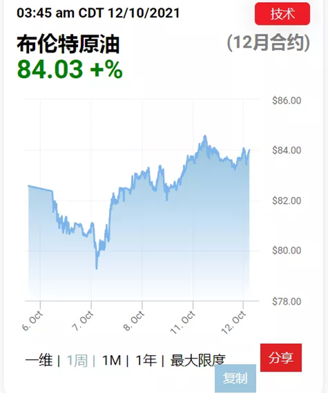 布倫特原油價格連日在80美元左右波動,截至發(fā)稿站上84.60美元,達到近3年來新高,逼近2018年10月的86.74美元階段性峰值。