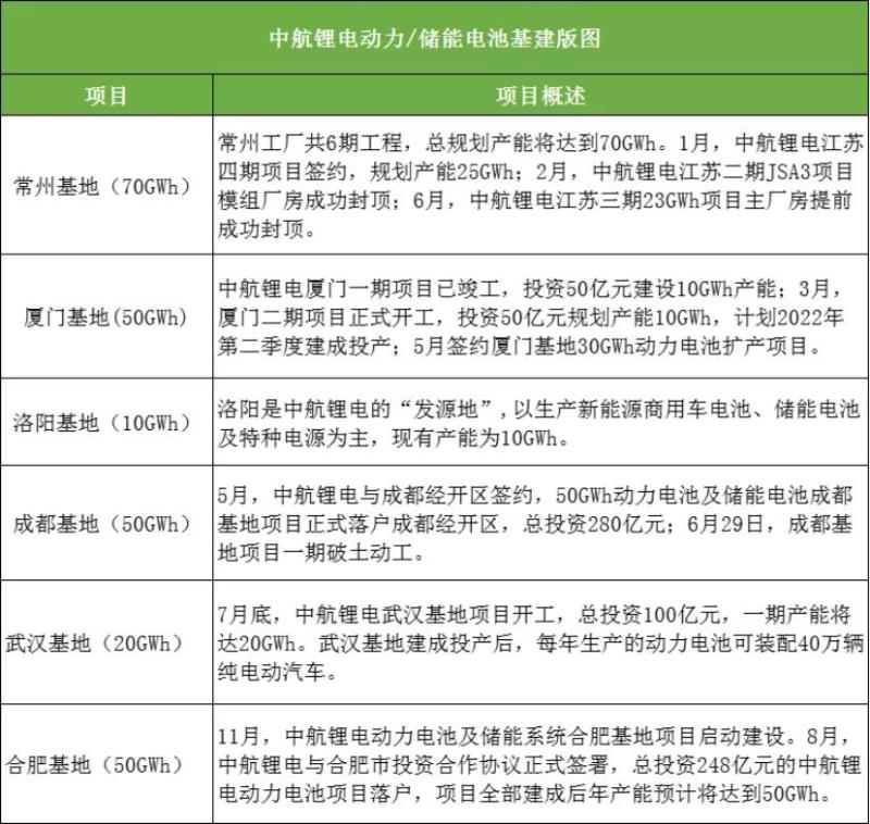 8月10日,中航鋰電就已經與合肥市簽署投資合作協議,總投資248億元合肥基地項目落地合肥,全部建成可具備50GWh年產能。