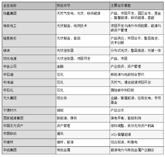 通過梳理公開信息,可以看到國家電投在與這些企業(yè)合作的主要方向: