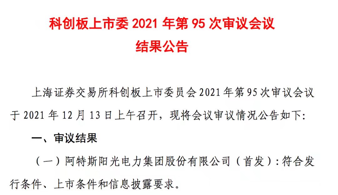 12月13日,經(jīng)上市委2021年第95次審議會(huì)議結(jié)果公告顯示,阿特斯陽(yáng)光電力集團(tuán)股份有限公司獲得通過(guò)。繼天合、晶澳后,阿特斯旗下組件和系統(tǒng)解決方案業(yè)務(wù)正式登陸A股科創(chuàng)板。