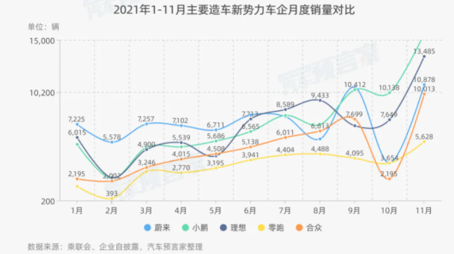 2021年,蔚來、小鵬、理想、哪吒等造車新勢力交付量持續突破,屢創新高。