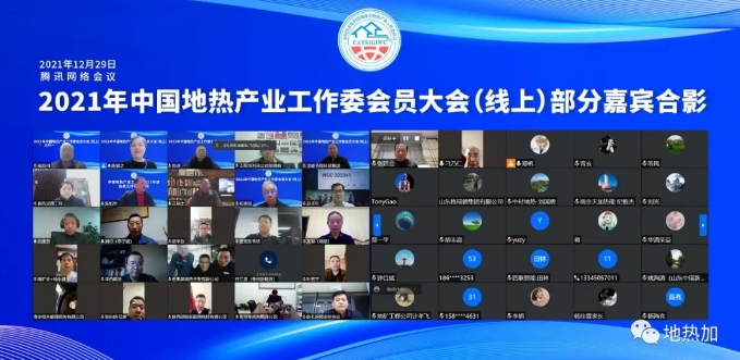 12月29日下午,2021中國地熱產業工作委會員大會(線上)通過騰訊會議成功舉行。會議總結了地熱產業工作委2021年工作成績,分析了當前地熱能行業面臨的形勢,部署了2022年工作任務。在歷時近4個小時的會議上,16位行業專家、企業家代表就國家戰略背景、地熱能行業發展、技術創新以及如何構建企業與政府間溝通與合作橋梁等問題,提出了許多具有前瞻性的真知灼見。