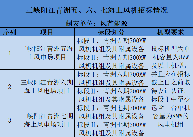 三峽陽江青洲五、六、七海上風電項目情況見下: