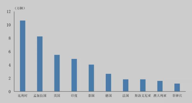 據(jù)中國(guó)汽車(chē)工業(yè)協(xié)會(huì)整理的海關(guān)總署數(shù)據(jù)顯示,2021年,中國(guó)新能源汽車(chē)出口量排名前十位國(guó)家依次是比利時(shí)、孟加拉國(guó)、英國(guó)、印度、泰國(guó)、德國(guó)、法國(guó)、斯洛文尼亞、澳大利亞和菲律賓。與上年相比,上述十國(guó)出口量均呈增長(zhǎng),其中斯洛文尼亞、澳大利亞和泰國(guó)增速最為明顯。2021年,上述十國(guó)新能源汽車(chē)出口42.4萬(wàn)輛,占新能源汽車(chē)出口總量的77.8%。