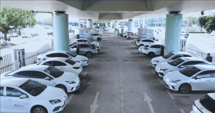 ▲ 在海南??谑惺兰o大橋下方圓一公里范圍,分布著6個充電站、300多支充電樁、2個換電站,是新能源汽車“充電一條街”。
