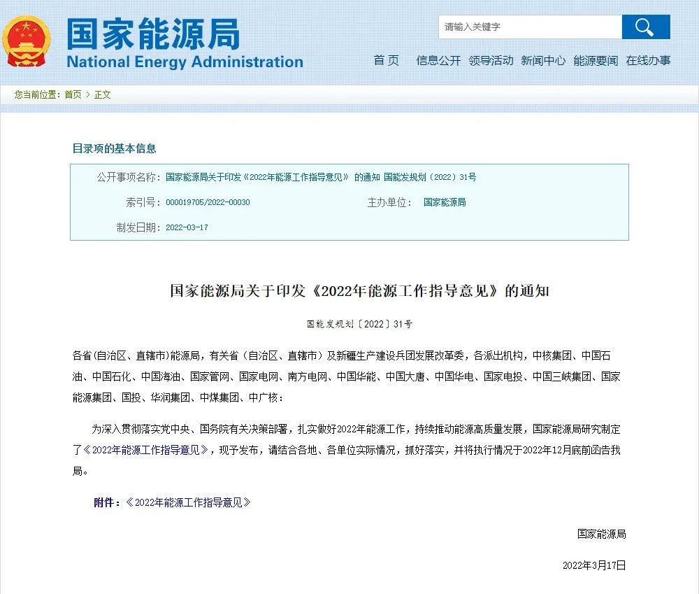 2022年能源工作指導意見