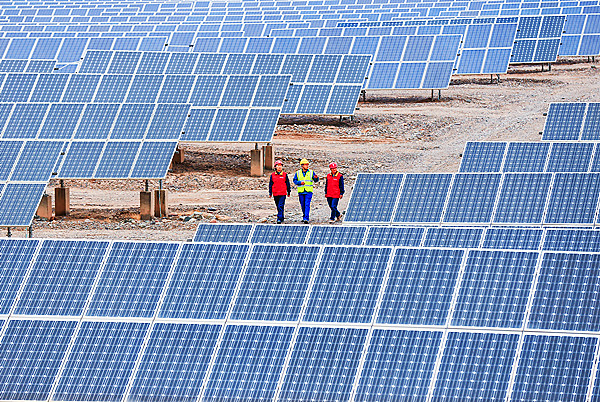 國網哈密供電公司黨員服務隊前往哈密石城子光伏產業園開展用電服務,助力新能源產業發展。(馮洋 攝)
