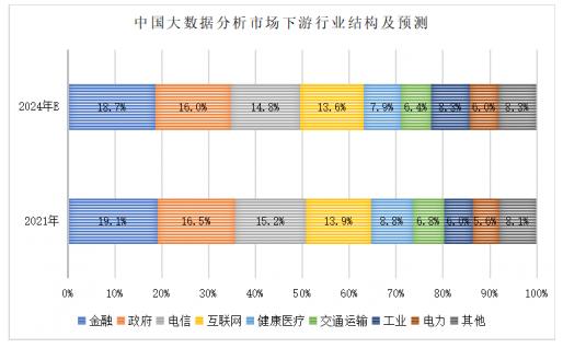 未來我國大數據分析市場下游行業結構將會發生小幅變化。賽迪CCID預測,2024年我國大數據分析市場下游行業中,金融、政府、電信、互聯網行業依然是發展重點,但其市場占比將有所下降,而工業、電力行業將快速增長。