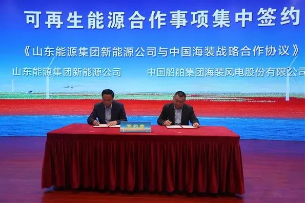 “作為風電行業(yè)國家隊,中國海裝將深入貫徹“30·60”戰(zhàn)略部署,以“踐行新發(fā)展理念,支撐新能源戰(zhàn)略”為使命,充分依托中船集團海工裝備研發(fā)制造優(yōu)勢,堅定不移實施“創(chuàng)新引領,海陸并舉、向海圖強”的發(fā)展戰(zhàn)略,充分發(fā)揮行業(yè)引領作用。”中國海裝副總經理(主持工作)溫劍波在致辭中表示。在隨后的簽約儀式中,溫劍波代表中國海裝分別與東營經濟技術開發(fā)區(qū)黨工委委員、管委會副主任張玉明,山東能源集團新能源有限公司總經理李偉簽訂了合作協(xié)議。
