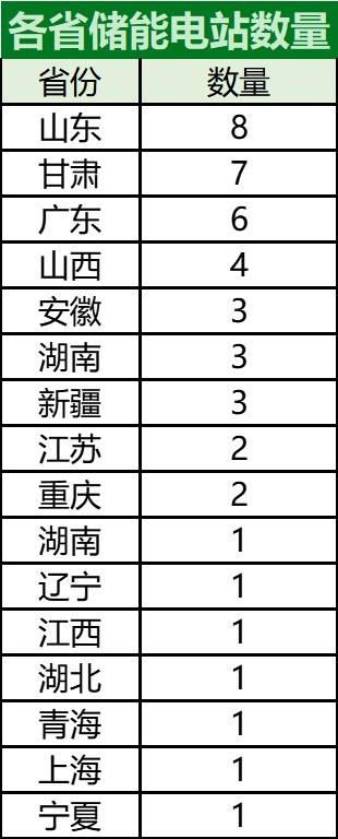 16省區(qū)市共享儲能電站數(shù)量統(tǒng)計表