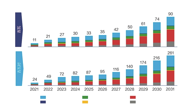 歐洲由于對俄羅斯天然氣需求的減少推動了儲能需求的快速增長,到2031年,總儲能容量將會增加14倍。英國在過去兩年里的電價上漲了300%以上,這提振了存儲領域的商業需求,也將推動對英國電網相關的儲能領域進一步投資。德國仍然是住宅儲能市場的領導者,在該國安裝屋頂太陽能成為所有新建筑的強制性要求。