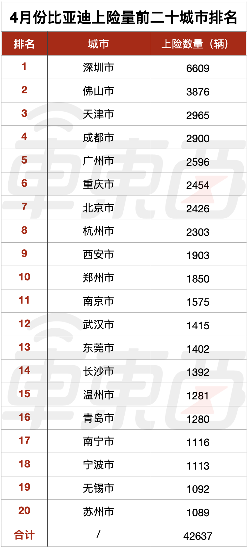 深圳排在第一位并不讓人意外,比亞迪作為深圳土生土長的企業,當地消費者對于比亞迪還是比較認可的,因而4月份比亞迪僅在深圳就有6609輛新車上險。