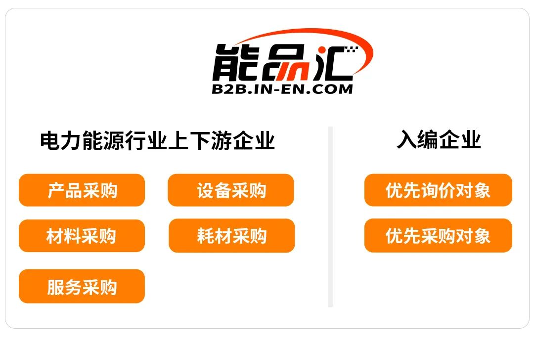 6、《能品匯》官網每年超20億元采購,優先選擇對象《能品匯》能源工業品電商平臺,為電力能源行業上下游企業,提供產品采購、設備采購、材料采購、耗材采購、服務采購等服務。每年通過《能品匯》采購的設備、材料金額超20億元。《供應商名錄》入編的企業,將優先作為電商平臺詢價、采購的對象。