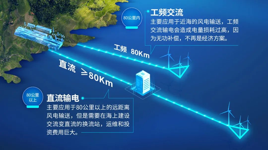在低頻輸電系統場景下,低頻風電機組具備了高可靠性、強環境適應性、電網友好性、低損耗、低噪音等諸多技術優點,各項技術指標均達到全球領先水平,可以有效解決工頻交流以及直流輸電技術存在的充電無功大、損耗高、投資和運維成本高等問題,更適合海上風電的遠距離大容量輸送。