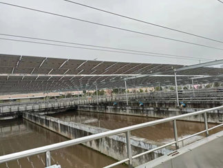 針對污水廠構筑物跨度大、鋪設難的問題,聚光新能源利用柔性懸索光伏支架系統技術優勢,打破常規光伏電站模式,創造性地在污水處理廠的水池上空,建設光伏電站。柔性懸索光伏支架外型美觀,能實現土地、空間利用率的最大化。艷陽高照,原來露天的污水處理區域現在已被密密麻麻“披上”了一塊塊光伏板。據相關負責人介紹,污水處理廠白天工業電價較高,光伏發電系統恰好在白天運行,能抵消一部分電力費用,減少污水處理廠成本。此外,光伏板還能遮擋雨雪、雜物,降低設備損耗,員工在光伏板下蔭涼環境中工作起來也舒服多了。
