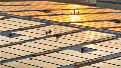12月24日,在廣西壯族自治區(qū)柳州市柳江區(qū)智能家電產(chǎn)業(yè)園,工人在廠房屋頂安裝光伏板。