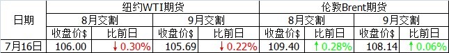 當(dāng)日好消息不斷。美元匯率下跌,支撐油價上行。6月美國礦業(yè)生產(chǎn)指數(shù)比前一月上漲0.3%,小幅超出市場預(yù)期。美國住宅建設(shè)行業(yè)協(xié)會(NAHB)公布的7月住宅建設(shè)指數(shù)達到7年來的最高值。美國能源信息署(IEA)將于周三公布的石油庫存預(yù)計將繼續(xù)減少。然而由于美國股市當(dāng)日行情走弱,WTI油價最終收跌。