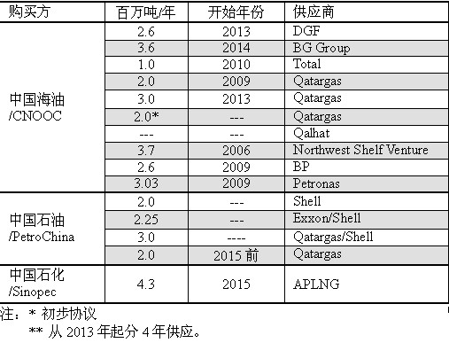 中國簽署的LNG進口協議