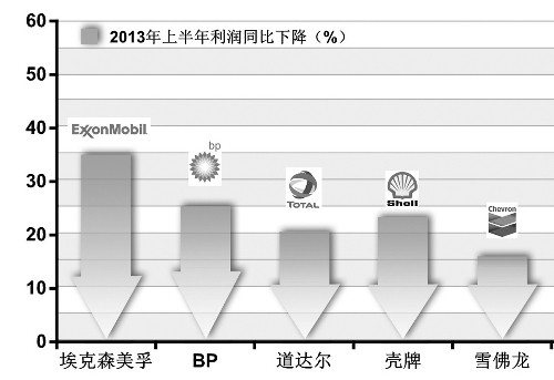 財報中國際大石油公司的利潤率摧毀了投資者關于成長空間的想象力。據這幾個公司財報顯示,2013年上半年,埃克森美孚利潤同比下降了35%,BP下降了25%,殼牌下降了23%,道達爾下降了20%,雪佛龍下降了15.6%,埃尼更是直接重挫53%。