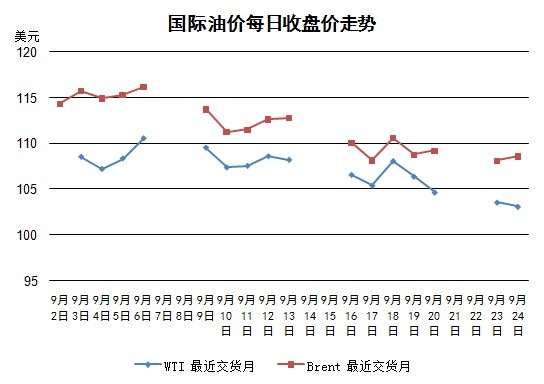 紐約WTI價(jià)格連續(xù)4日下跌,為7月30日來的最低值。倫敦布倫特油價(jià)微漲。美國總統(tǒng)奧巴馬在聯(lián)合國大會(huì)上發(fā)言表示,要求聯(lián)合國安理會(huì)通過決議,管理并廢棄敘利亞化學(xué)武器,同時(shí)強(qiáng)調(diào)外交努力的必要性。同時(shí),奧巴馬就伊朗核問題表達(dá)了對伊朗總統(tǒng)哈魯尼的期待。當(dāng)日,伊朗總統(tǒng)哈魯尼的發(fā)言也引發(fā)了關(guān)注,人們期待中東局勢能夠朝著好的方向轉(zhuǎn)變。