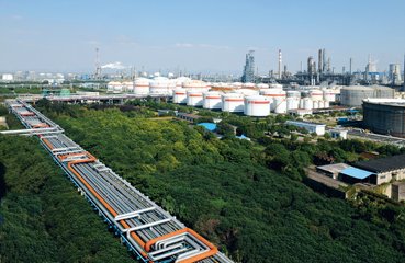中化致力于油品質量升級,向社會提供清潔能源。圖為中石化鎮海煉化裝置區