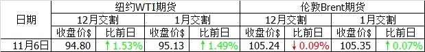11月6日紐約WTI油價(jià)小幅反彈,倫敦布倫特油價(jià)微跌。美國(guó)能源信息署當(dāng)日公布的石油庫(kù)存周報(bào)顯示,原油庫(kù)存比前一周增加160萬(wàn)桶,同路透社調(diào)查預(yù)測(cè)的增加180萬(wàn)桶基本一致。但是汽油庫(kù)存比前一周下降380萬(wàn)桶,降幅遠(yuǎn)超出路透社調(diào)查預(yù)測(cè)的減少60萬(wàn)桶。另外,油價(jià)在前幾個(gè)交易日有超跌的傾向,因此也存在抄底買單。