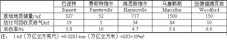 常規天然氣采收率一般為60%,原油一次采油為5%~15%,三次采油可達60%。非常規儲層中的致密氣、致密油和頁巖氣的采收率都很低的。表中未美國油氣雜志報道的數據,可以看出頁巖氣采收率在4.7%~10%之間,是很低的。