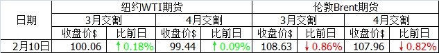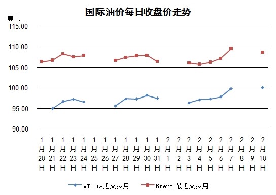 當日外匯市場美元走弱,導致以美元定價的油價給人以較低的感覺,拉升油價上漲。路透社調查預計,截至上周的原油庫存增加300萬桶,汽油庫存基本維持不變,餾分油庫存減少230萬桶。但當日缺乏供求和美國金融政策的新消息,價格波動缺乏方向感。紐約WTI最終小幅收漲,一個半月以來再次登上100美元的關口。倫敦布倫特油價因為(嚴寒天氣即將結束導致的)民用燃料油價格下跌以及利比亞和北海供給的增加,最終收跌。