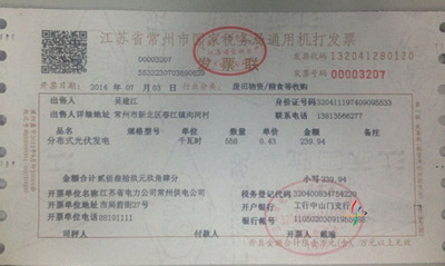 吳建江的光伏電站裝機(jī)容量9.9千瓦,今年6月并網(wǎng),第一個(gè)月發(fā)電量710千瓦時(shí),其中558千瓦時(shí)賣給電網(wǎng),獲得電費(fèi)收入538.14元。此前按照規(guī)定,自然人無法開增值稅發(fā)票,居民賣電無法結(jié)算,6月份稅務(wù)部門專門針對(duì)個(gè)人光伏電站調(diào)整了政策。目前,江蘇電網(wǎng)共受理分布式電源項(xiàng)目669個(gè),發(fā)電容量66萬千瓦,其中391個(gè)是居民光伏發(fā)電項(xiàng)目。