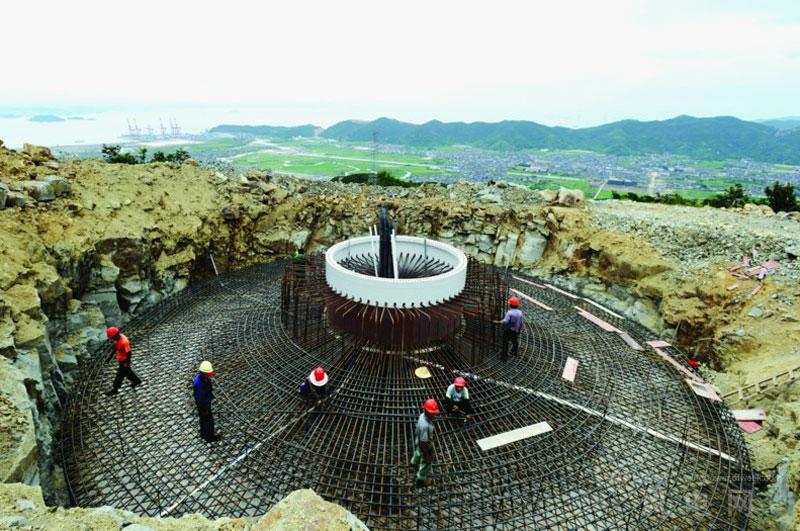 金塘風電場一期工程項目是《浙江省風電發展“十二五”規劃》和市重點建設項目之一,計劃安裝17臺單機容量為1500KW的風力發電機組,建成后,預計年發電量可達6000萬千瓦時。目前,工程已完成2座基礎澆注。
